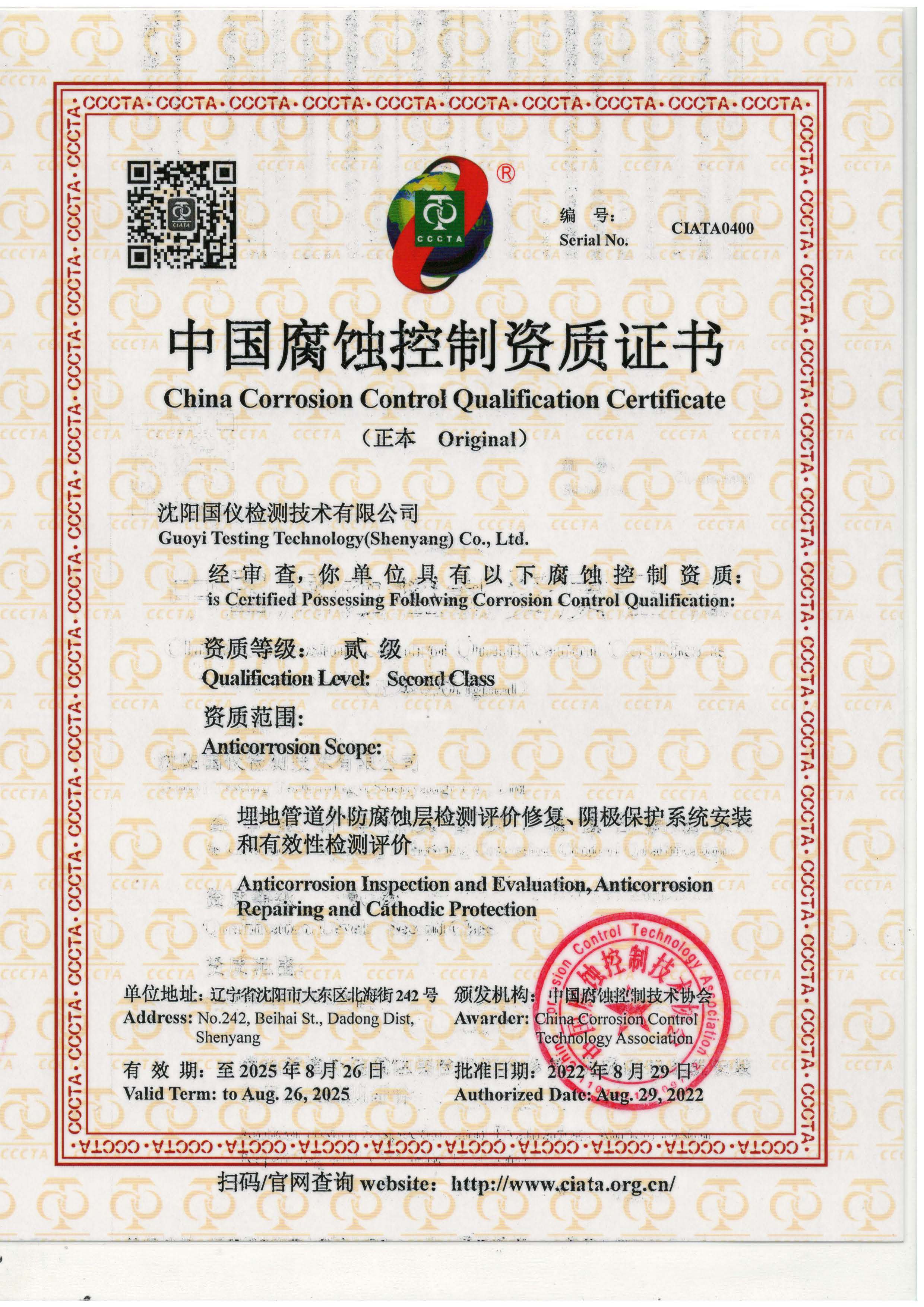 • 防腐資質證書